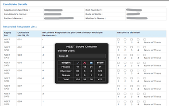 NEET 점수 확인기는 NEET 수험생이 OMR 응답지를 쉽게 분석할 수 있도록 설계된 무료 Chrome 확장 프로그램입니다. 이 프로그램은 공식 OMR 챌린지 페이지에서 답변을 자동으로 가져오고, 45–48번 북릿 코드에 대한 답안 키와 비교하여 사용자에게 성과에 대한 즉각적인 피드백을 제공합니다. 이 도구는 총 점수를 계산할 뿐만 아니라 물리학, 화학 및 생물학에 대한 세부 과목별 분석을 제공하여 학생들이 준비 과정에서 강점과 약점을 식별할 수 있도록 합니다.